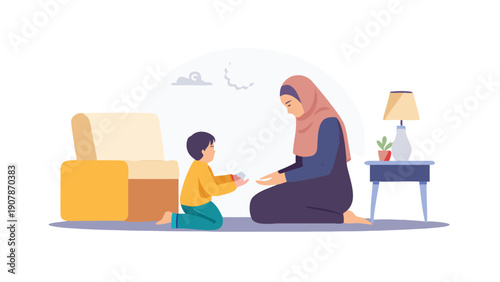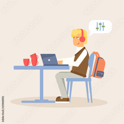 Posilovna. Mladý muž kulturista dělá paže cvičení budovat svaly a sílu, ploché vektorové ilustrace. Činka triceps cvičení. Sport a zdravý životní styl.