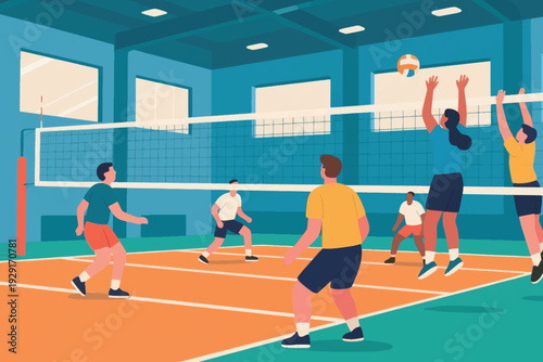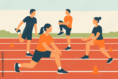 Fitness tělocvična. Mladé ženy dělají Tae bo aerobik, protahovací cvičení, ploché vektorové ilustrace. Sportovní a fitness cvičení. Aktivní a zdravý životní styl.