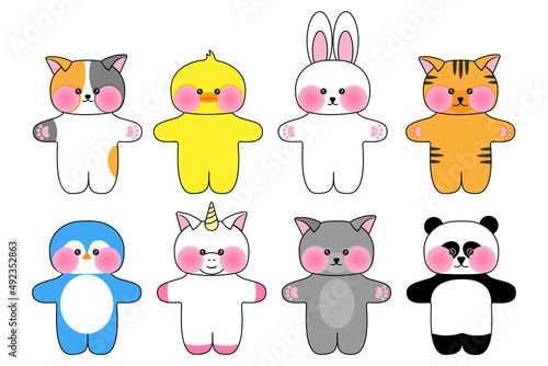 Fitness mýval panda fox ikona set. Vektorové ilustrace izolovaných na bílém pozadí. Roztomilá zvířátka hrající badminton,jízda na koloběžce, cvičení se švihadlem, hula hoop, činky atd.