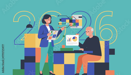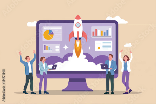 Mladá dívka sportuje doma spolu s online trenérem, vektorová plochá ilustrace. Domácí cvičení, online fitness trénink, sport a zdravý životní styl.