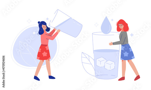 Fitness Žena pití protein shake syrovátkový koktejl sportovní výživa po aktivním tréninku ploché vektorové ilustrace izolovaných na pozadí