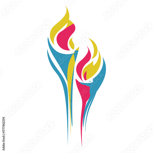Vrstvený papír řez řemeslné styl sportovní hořící pochodeň silueta, vektorové ilustrace. Slavnostní zahájení štafety sportovní soutěže.
