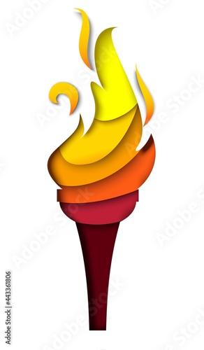Vrstvený papír řez řemeslné styl sportovní hořící pochodeň silueta, vektorové ilustrace. Slavnostní zahájení štafety sportovní soutěže.