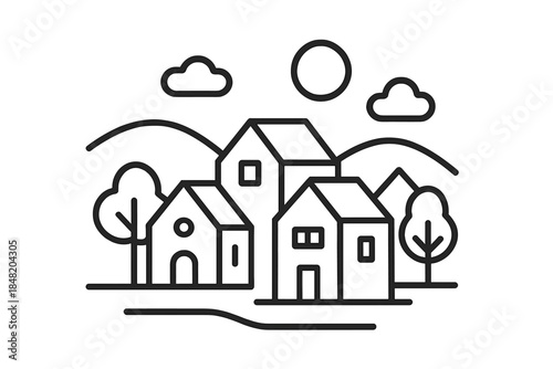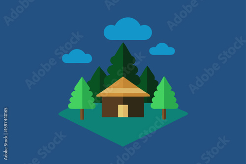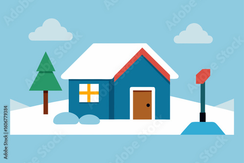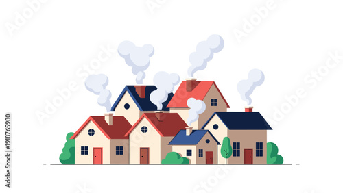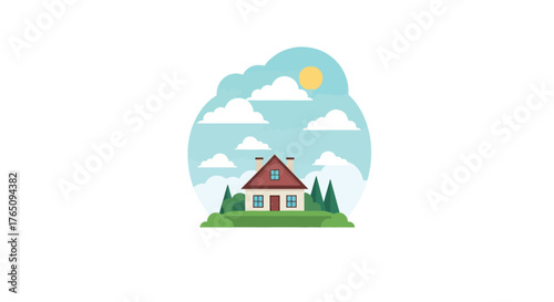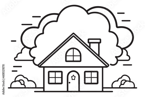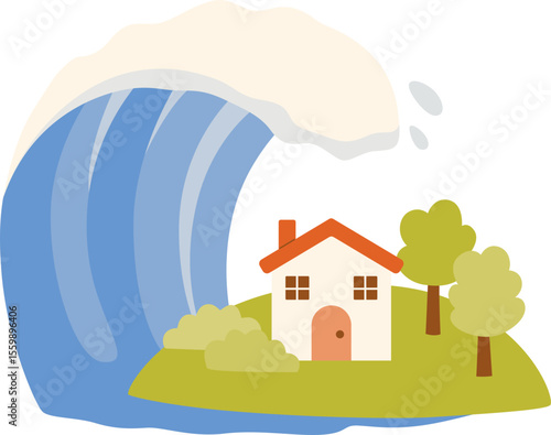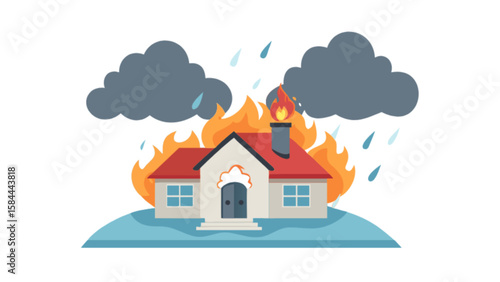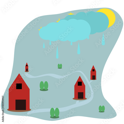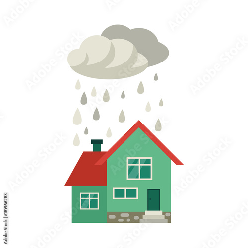 Povodeň katastrofa vektor. Dům pod liják ikona. Hurikán, bouře nebo tsunami v městské oblasti scény. Velký monzun sprcha ilustrace izolovaných na bílém pozadí