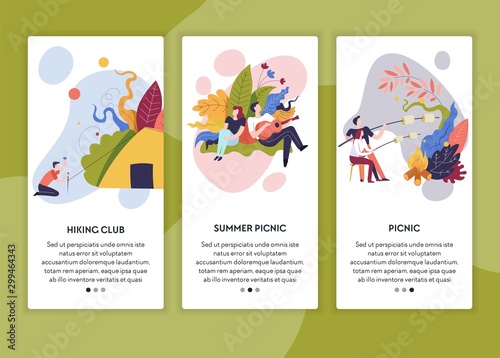 Květinové zahradnictví webové stránky a mobilní aplikace onboarding obrazovky. Menu banner vektorová šablona pro vývoj webových stránek a aplikací. Pěstování kvetoucích rostlin, prořezávání, opylení, klíčení rostlin.