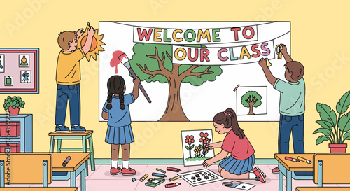 Květinářství obchod Kreslená scéna s prodavačkou u pultu a mužskými ženskými návštěvníky nakupujícími rostliny, kytice. Inside floristry market vector illustration