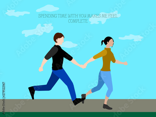 Vektorová ilustrace šťastného milujícího páru, který dostal rande. Mladý muž dává kytici květin své přítelkyni plochý styl designového prvku.
