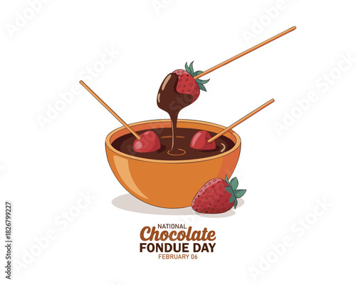 Ikona Fondue. Vektorové hrnec vyhřívaná mísa s rozpuštěnou čokoládou a jahodou na dip vidlice stick izolovaných na bílém pozadí