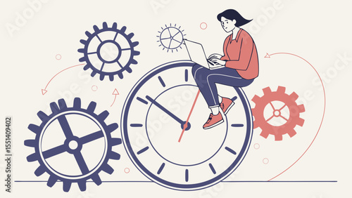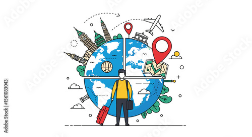 Jídlo velkými písmeny, mužské postavy nakupující s taškami na potraviny, číšník v restauraci s talířem na nádobí, kuchařka s pánví, vektorová plochá ilustrace. Lidé nakupují, servírují, připravují potraviny.