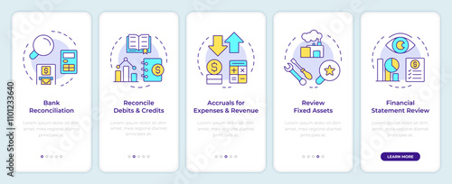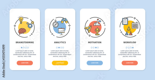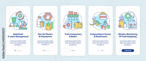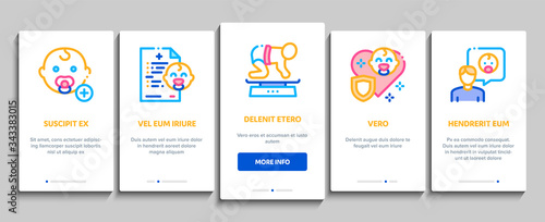 Bezpečnost potravin onboarding mobile app page template set. Jídlo chill, oddělené, čisté a vařit telefon obrazovky aplikace vektorové ilustrace. Koncept prevence nemocí přenášených potravinami