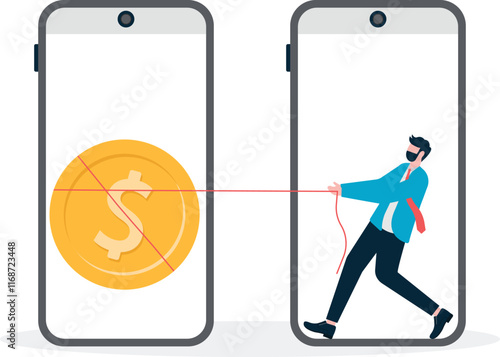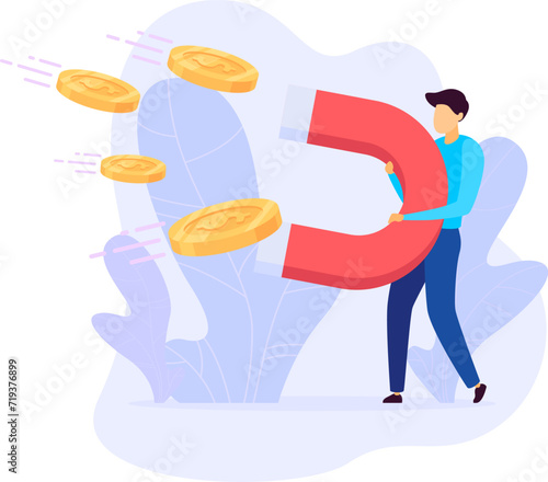 Fortune muž tlačí kolečko s peníze pytel vektorové ikony izolovaných na bílém pozadí