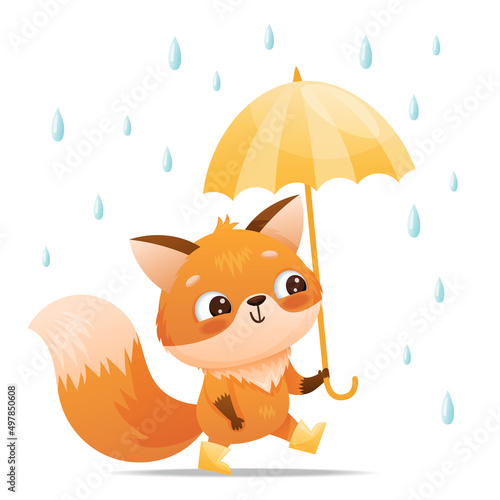Fox létání na deštník roztomilý vektor. Šťastný divoké červené zvíře ilustrace. Funny cartoon autumn character Flat icon izolovaných na bílém pozadí