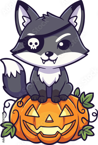 Fox pirate vector. Roztomilé zvíře námořník na sobě klobouk a černé oko Patch ikonu. Legrační dítě zvíře Námořní charakter ilustrace izolovaných na bílém pozadí
