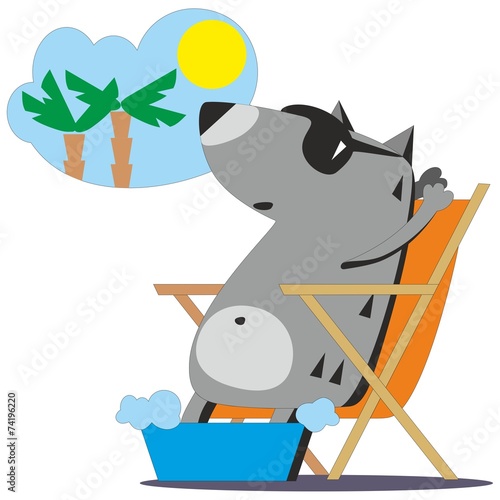 Fox odpočinek na pláži vektor. Roztomilý ospalý líný zvíře podřimování s sladký sen drží knihu a leží na lehátku izolovaných na bílém pozadí. Letní relax na tropické přímořské ilustrace