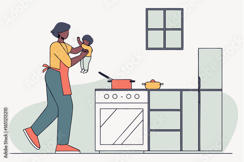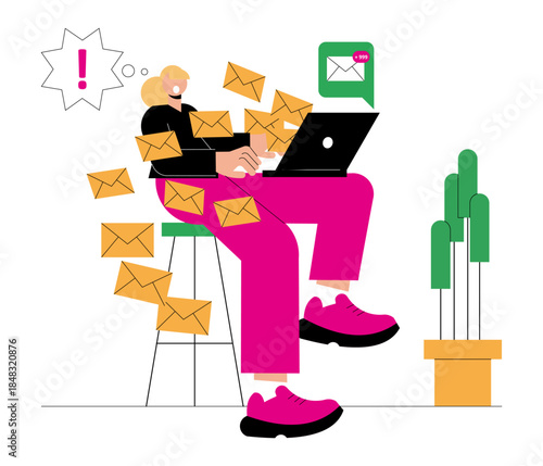Noha. Mladá žena pracující z home office, ploché vektorové ilustrace. Freelancer ženská postava pracuje na notebooku v kuchyni. Práce na dálku, distanční vzdělávání, online učení.