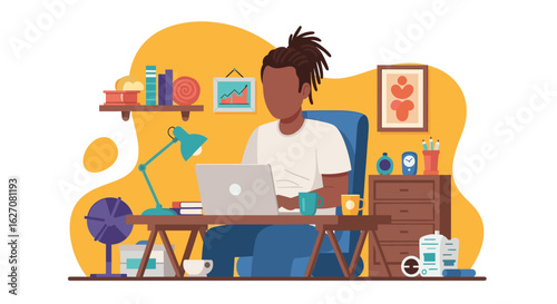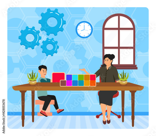 Mužské a ženské postavy freelancers coworking tým pracuje na notebooky, vektorový plochý styl designu ilustrace. Práce na volné noze na dálku, coworkingové centrum, freelancing, webové stránky na volné noze.