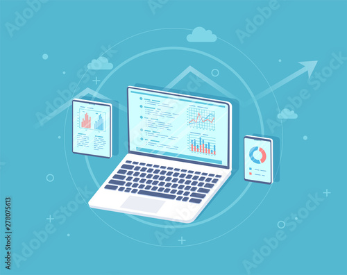 Freelancer práce vektor plochý styl designu ilustrace. Laptop, myš, sluchátka, dolarové mince, šálek čaje, psací potřeby. Koncept služby na volné noze pro webový banner, webovou stránku atd.