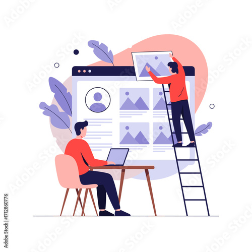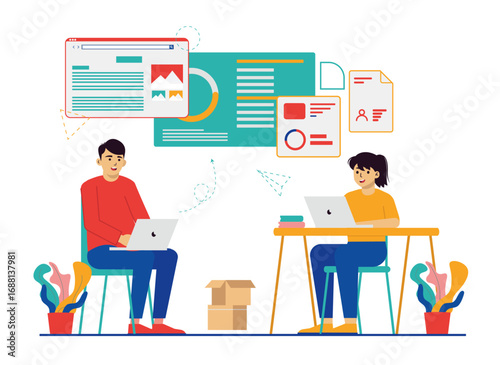 Vývoj Front-end, vektorový plochý design ilustrace. Tým profesionálních programátorů kódování webových stránek. Frontend webové stránky, webové aplikace vytváří koncept pro web banner, webové stránky.