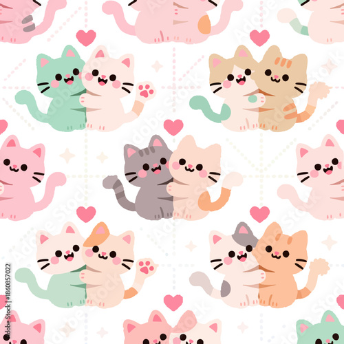 Legrační kočky vektorové bezešvé vzor. Kreativní design se šťastnými hravými kočkami na látku, Textil, tapety, balicí papír.