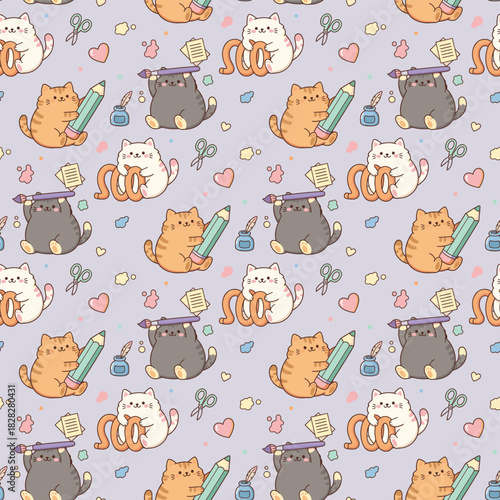 Legrační kočky vektorové bezešvé vzor. Kreativní design pro látku, Textil, tapety, balicí papír se šťastnými kočkami jíst, spát, koupat se.