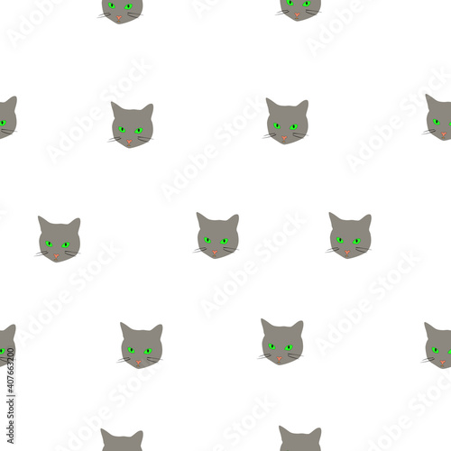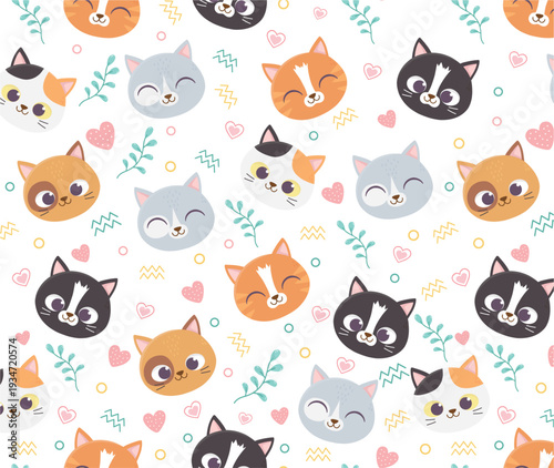 Legrační kočky vektorové bezešvé vzor. Kreativní design pro látku, Textil, tapety, balicí papír s kočičími hlavami, krmivo pro domácí zvířata, ryby.