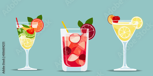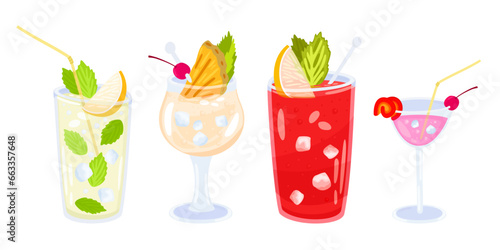 Legrační koktejl kawaii tvář vektorové izolované set. Roztomilý alkoholický nebo nealkoholický nápoj z ilustrace baru letního letoviska. Kreslený tropický nápoj smiley maskot izolovaných na bílém pozadí