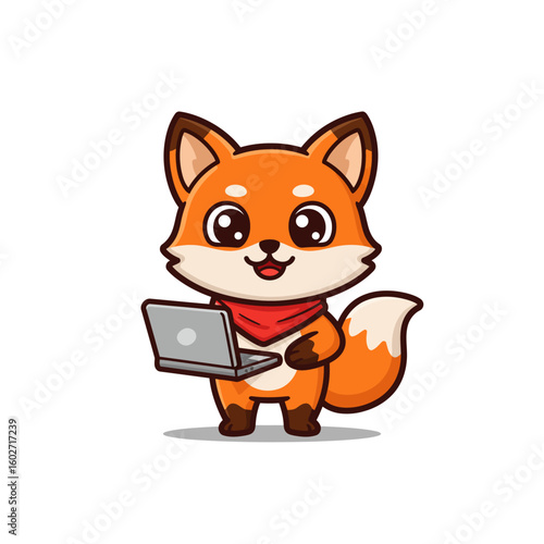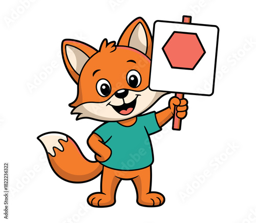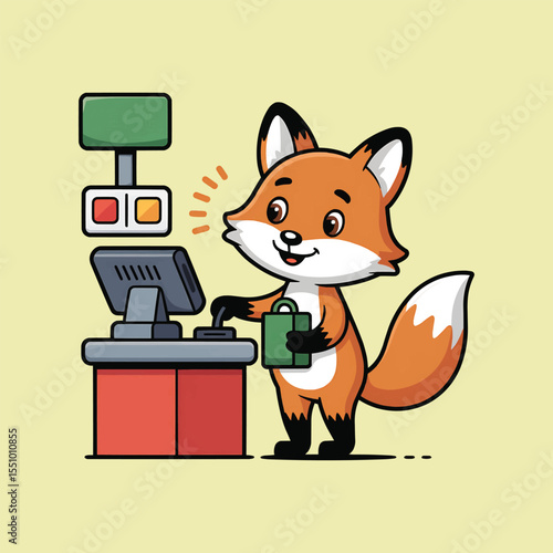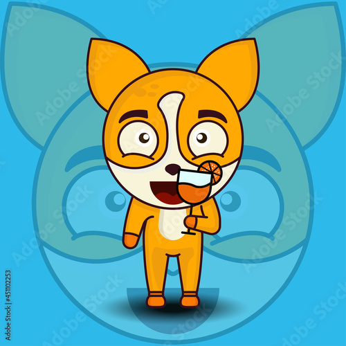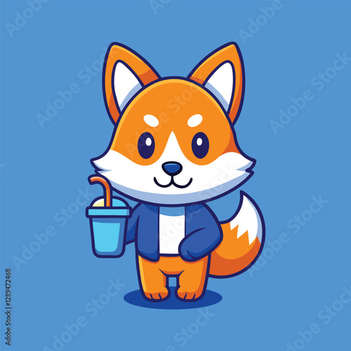 Legrační liška vektor. Roztomilý lesní animal cartoon icon. Komiks woodland charakter s červeným ocasem drží šálek kávy, pití čaje nápoj květ izolovaných na bílém pozadí