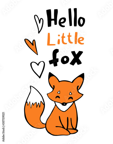 Legrační liška vektor. Roztomilý lesní animal cartoon icon. Comic woodland charakter s červeným ocasem sedí a drží transparent být roztomilý izolovaných na bílém pozadí