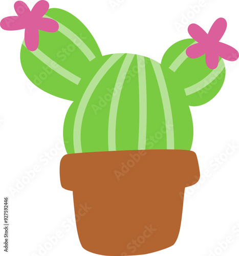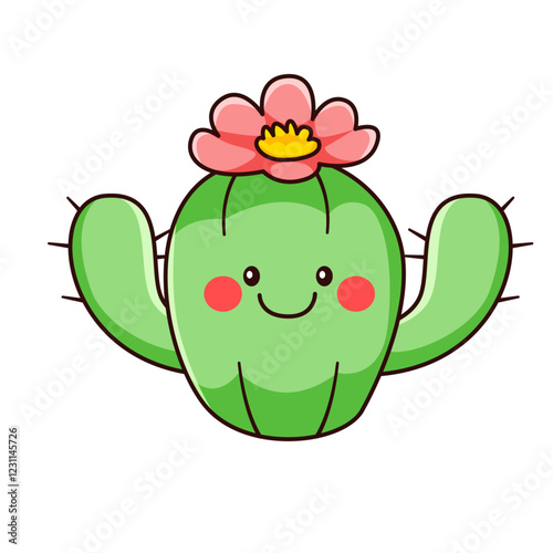 Kaktus vektor. Funny sukulentní dívka rostlina maskot s růžovým květem květina kreslené ilustrace. Roztomilý Kaktusy koketní s úsměvem v květináči izolovaných na bílém pozadí