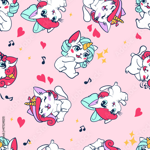 Legrační kočky vektorové bezešvé vzor. Kreativní design pro látku, Textil, tapety, balicí papír s roztomilými spícími kočkami.