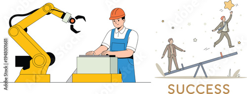 Údržbář nebo sběratel nábytku montáž a instalace skříně nebo skříně pomocí nástroje pro ruční vrtačku, ploché vektorové ilustrace. Montáž nábytku.