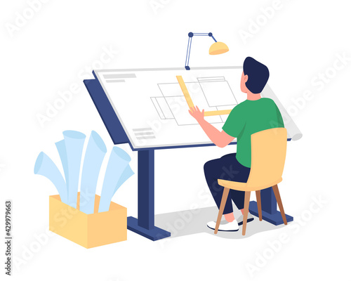 Údržbář nebo sběratel nábytku montáž a instalace skříně nebo skříně pomocí nástroje pro ruční vrtačku, ploché vektorové ilustrace. Montáž nábytku.