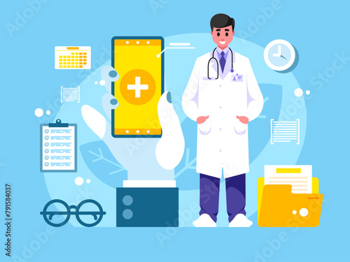 Futuristická laboratoř pro diagnostiku zdraví lidí s technologií AI health care vector illustration. HUD medicína a umělá inteligence pro vyšetření pacientů