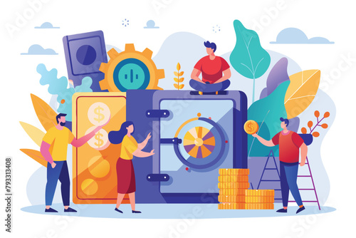 Tým vývojářů her pracuje na softwarovém designu vektorové ilustrace. Koncept průmyslu výroby videoher. Digitální technologie, programování a codding. Kreativní proces na počítači