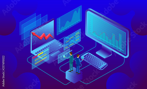 Herní gadgets web banner šablony. Zařízení pro hráče včetně konzoly, ovladače, počítače, vektorové izometrické ilustrace. Online hry a herní konzole.