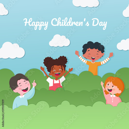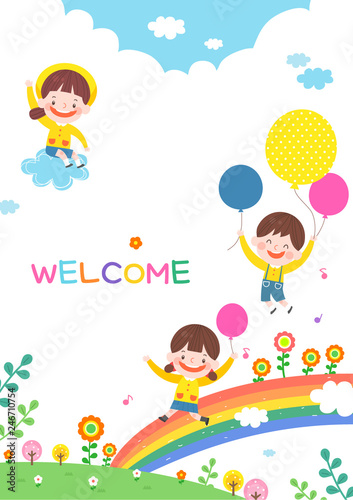 Herní zóna v central Parku pro šťastné děti rekreace pozvánka plakát kreslený design šablony vektorové ilustrace. Veselá matka s dětmi baví na venkovní hřiště