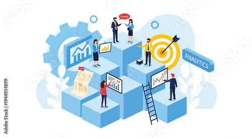 Koncept Gamefi. Blockchain game vector 3D izometrický plakát. Crypto, NFT art, token a zastupitelné finance. Lidé vydělávají peníze v metaverse.