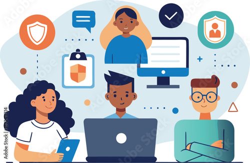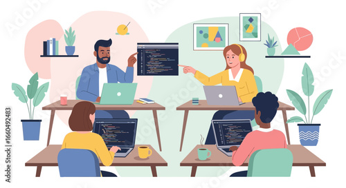 Hráči hrající konzolové videohry, ploché vektorové ilustrace. Otec se synem, přátelé chlapci a dívky hrají hry v televizi s ovladači. Technologie videoher. Volný čas.