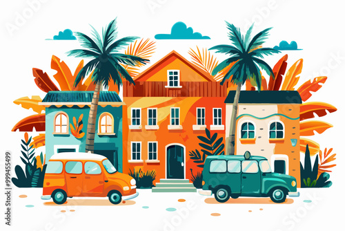 Garážové prodeje, ploché vektorové ilustrace. Lidé nakupující použitý domácí nábytek, domácí spotřebiče, oblečení, hudební nástroje, knihy, nádobí, sportovní potřeby atd. Prodej na dvoře, bleší trh.