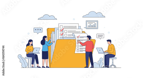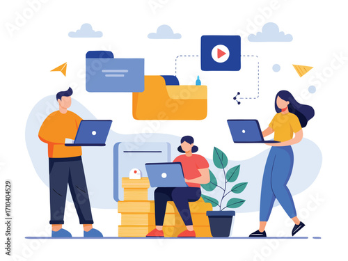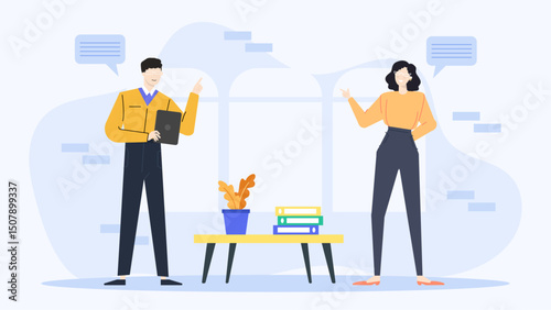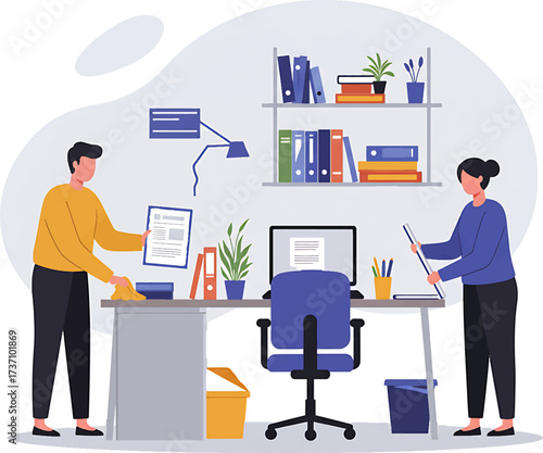 Prodej Garáže. Lidé prodávají a kupují bytový nábytek, domácí spotřebiče a další vintage použité předměty, ploché vektorové ilustrace. Prodej na dvoře, bleší trh.