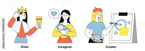 Kontejnery na odpadky v různých barvách, vektorové ilustrace izolovaných na bílém pozadí. Recyklační koše nebo odpadkové koše s domovním odpadním papírem, kovem, elektronickým odpadem, plastem, bateriemi, organickým, sklem.