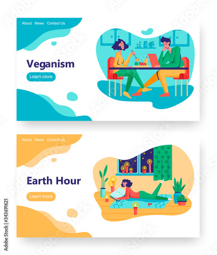 Třídění odpadků a plast recyklace koncept ilustrace. Mladá dívka na skútru. Ekologický městský životní styl. Životní prostředí, ekologie. Vektor web design šablony. Vstupní stránka webové stránky ilustrace