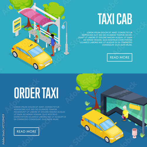 Skládka odpadu, čištění území a recyklace odpadu horizontální izometrická sada bannerů, vektorové ilustrace. Koncept separace a likvidace odpadků a recyklovatelných materiálů.