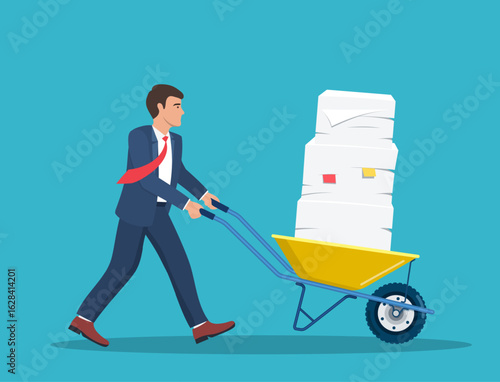Zahradník s trakařem. Vektorový plochý design ilustrace izolované na bílém pozadí. Koncept zahradnictví pro webový banner, webovou stránku atd.