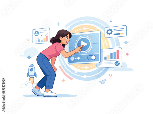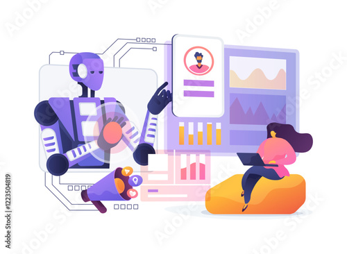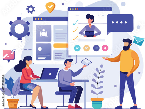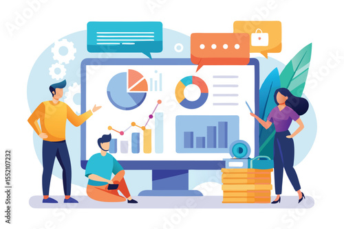 Obrovský smartphone s velkým písmenem z a skupinou mladých lidí komunikujících pomocí různých mobilních zařízení, vektorové ploché ilustrace. Generace Z vyrostla na konceptu internetu a sociálních médií.