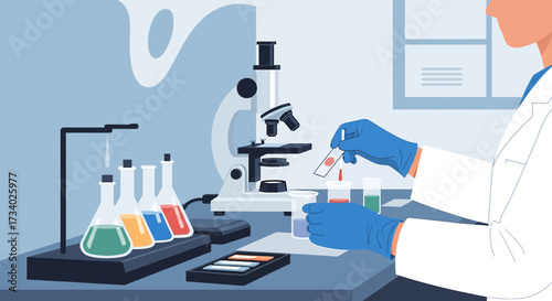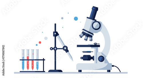 Genetika věda vzdělávání koncept vektorový plakát v plochém stylu designu. Laboratorní vybavení biologické školy.