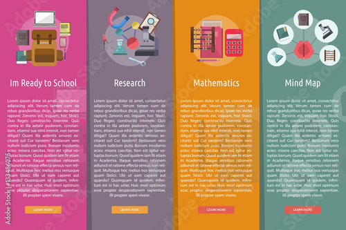 Geometrie, algebra a matematické vektorové bannery. Science education concept plakát v plochém stylu designu.