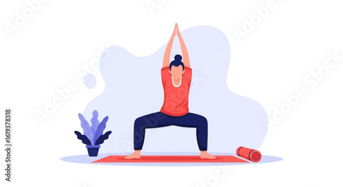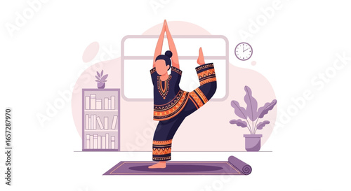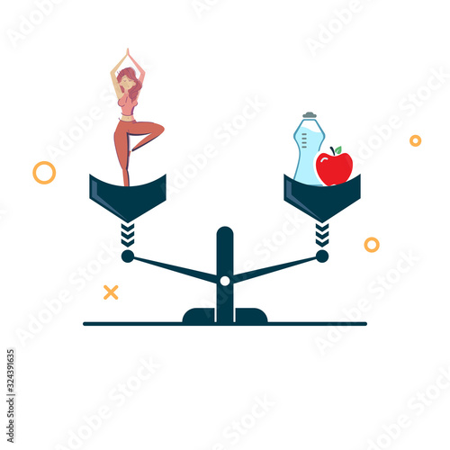 Dvě mladé dívky dělají aerobik na hudbu ve fitness studiu. Kolem sportovního vybavení, Hula Hoop, stupňová plošina, rohože, magnetofon. Sportovní vektorová ilustrace v plochém stylu.