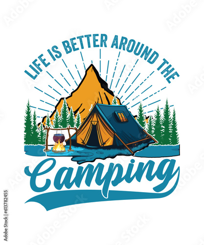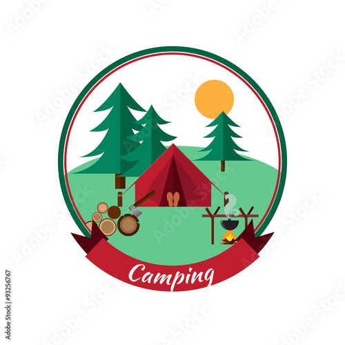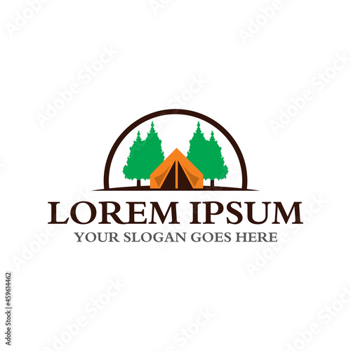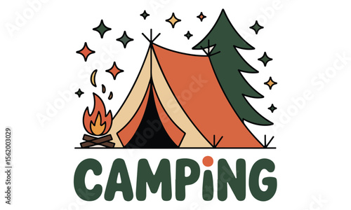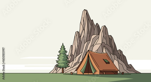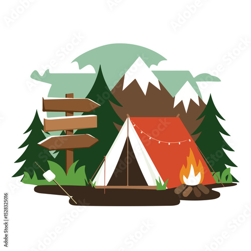 Glamping reklama. Eco camp vektorové plakát. Moderní jurtový kemp zasazený do lesa a hor. Cestování, odpočinek a dobrodružství na konceptu přírody. Stanový dům, táborák nad přírodní krajinou