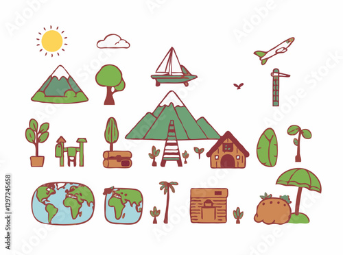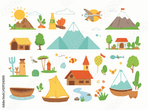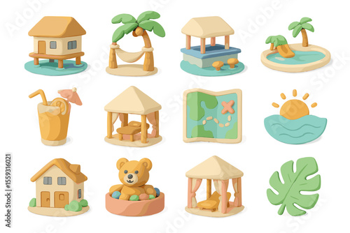 Glamping stan a domy pro luxusní víkendový vektorový set. Lidé turisté si užívají romantický pohodlný odpočinek na přírodě. Nábytek a salonek pro venkovní turistiku